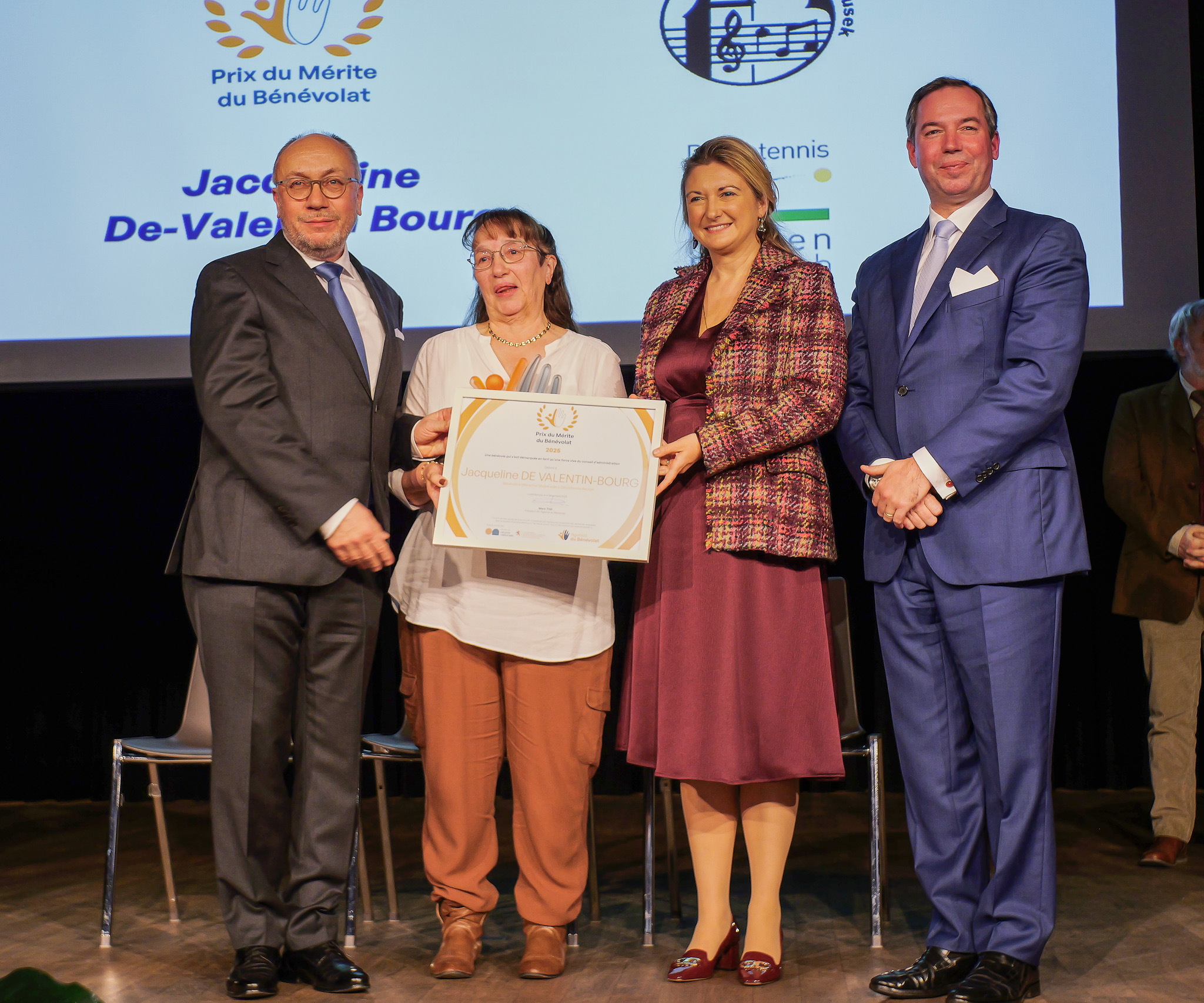 Daneben wurden fünf Organisationen mit dem Label de Qualité BÉNÉVOLAT ausgezeichnet, einem Symbol für Exzellenz und Engagement im Bereich des Ehrenamts. Dieses Gütesiegel zeichnet Vereine aus, die besonders hohe Standards im Bereich der Betreuung und Begleitung von Ehrenamtlichen erfüllen. Die diesjährigen Preisträger sind: