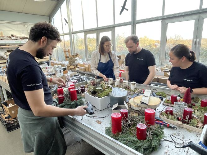 Over a period of two weeks, small groups from three Luxembourg‑based companies (JP Morgan Chase, LSC360 and FM) supported the gardening workshop team of the Fondation Kräizbierg. Under professional guidance, the company volunteers helped craft Christmas decorations and Advent wreaths, which were later sold at the annual “Jingle Moart” in support of the Fondation Kräizbierg. The foundation has been committed to the inclusion of people with disabilities for many years. The pilot project convinced both the on‑site team and the project leaders, demonstrating how impactful corporate volunteering can be.